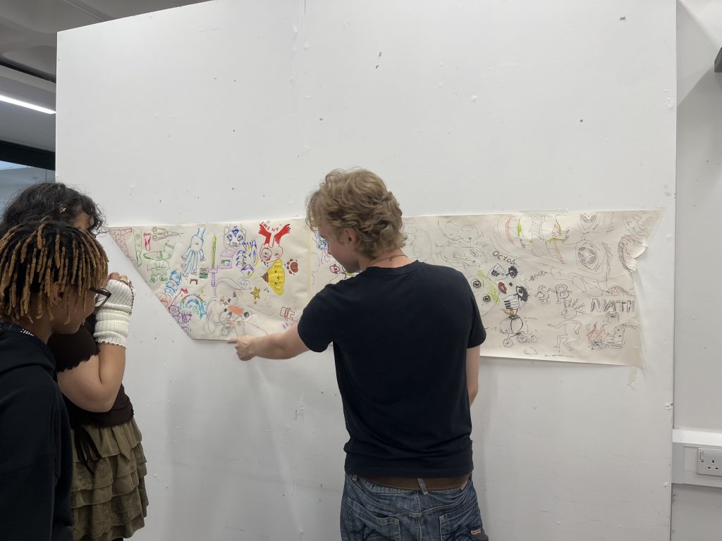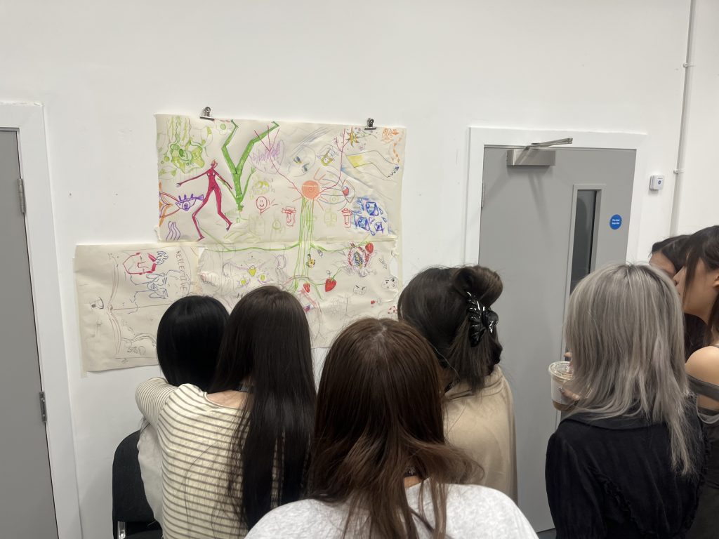 Everyone mixed their drawings, and we even wrote what the title and description would be if the artwork were displayed in a museum.